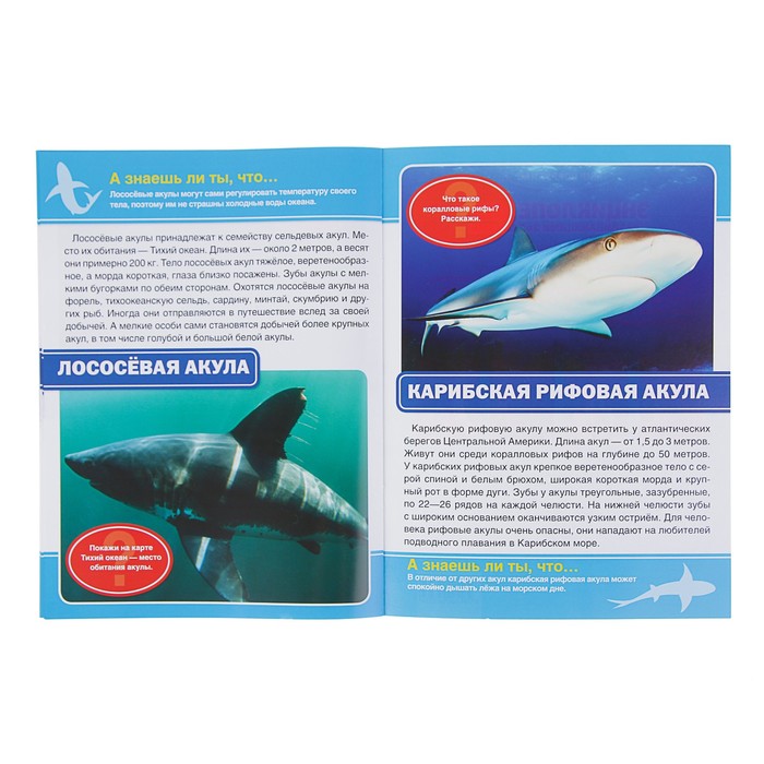 Энциклопедия. Акулы (214*290мм) 16стр — отличный вариант для тех родителей, которые привыкли окружать своего малыша только лучшими и качественными вещами. За такой книжкой ваш ребёнок проведёт время с пользой и удовольствием, узнает много нового и интересного.