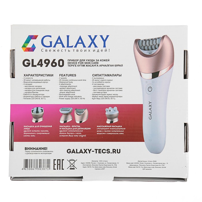 Мы предлагаем широкий ассортимент бытовой электроники. Эпилятор 5 в 1 Galaxy GL 4960, 5 Вт, 2 скорости, 4 насадки, белый — это полезный и актуальный прибор, который прослужит долго и сделает вашу жизнь проще.