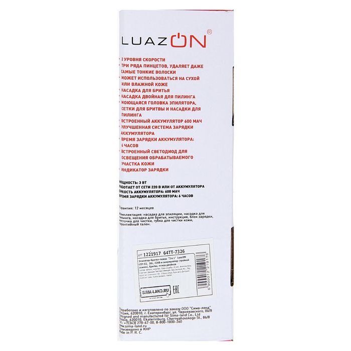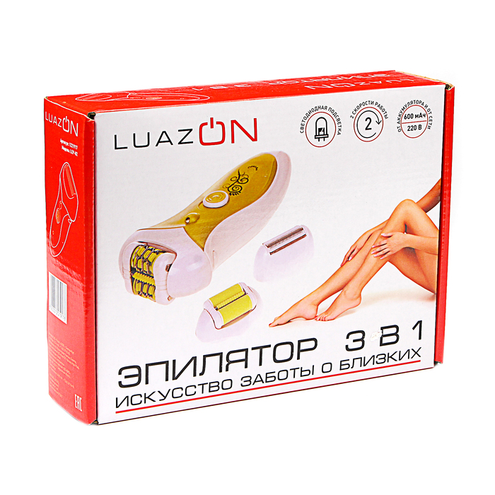 Эпилятор-бритва-пемза "3в1"LuazON LEP-02,3Вт,220В и аккумулятор (тройной зажим),бритва,пемза