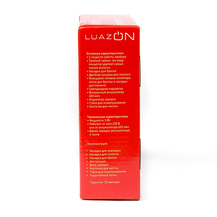 - Комплектация: насадка для эпиляции, насадка для пилинга, насадка для бритья, инструкция, блок зарядки, кисточка для чистки, губка для чистки кожи, гарантийный талон.