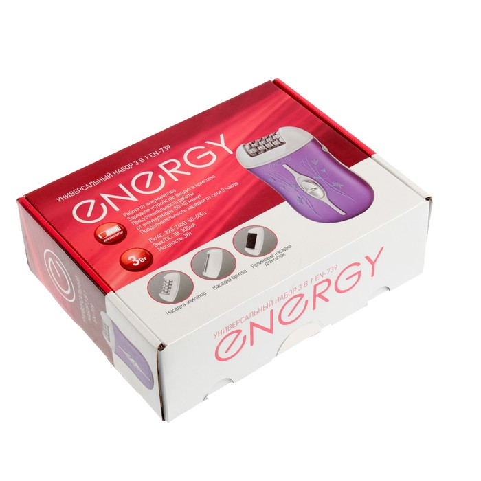 Мы предлагаем широкий ассортимент бытовой электроники. Эпилятор ENERGY EN-739, 3 в 1, 3 Вт, АКБ, 3 насадки, фиолетовый — это полезный и актуальный прибор, который прослужит долго и сделает вашу жизнь проще.