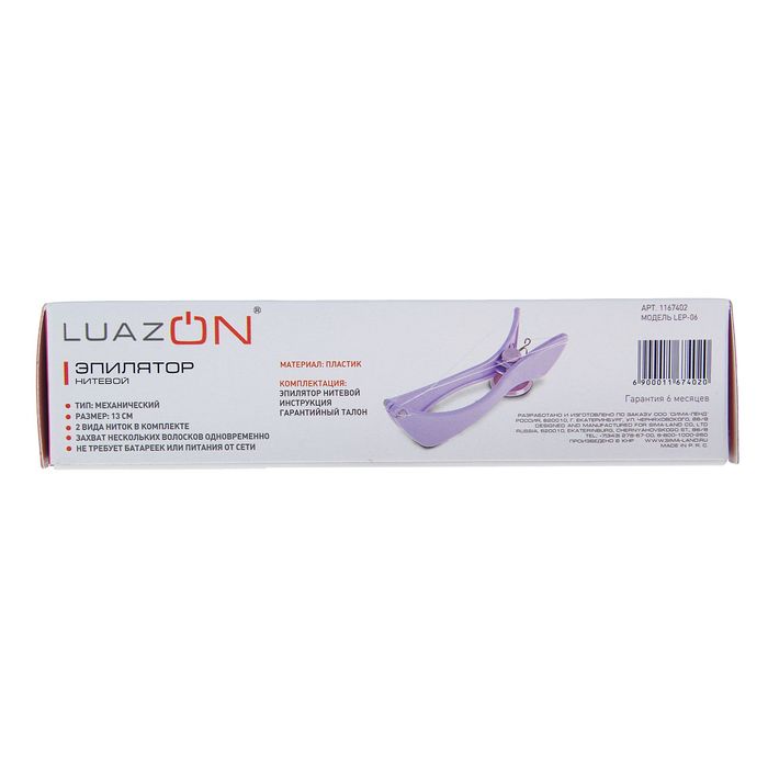 Нитевой эпилятор LuazON применяется для удаления нежелательных волосков на теле.В комплекте два вида ниток: мягкая — для тонких волосков (таких, как на лице), и более плотная — для жестких волос в области подмышек или на ногах. Нитки упакованы в бокс и уже разделены на отрезки нужной длины: вам не нужно отмерять нить определенной длины, просто вставьте её в прибор. Данная модель не требует батареек или питания от сети.