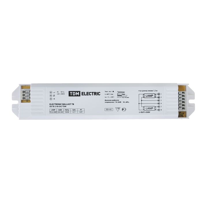 Электронный пускорегулирующий аппарат EB-T8-218-EA2 TDM предназначен для работы газоразрядных ламп.