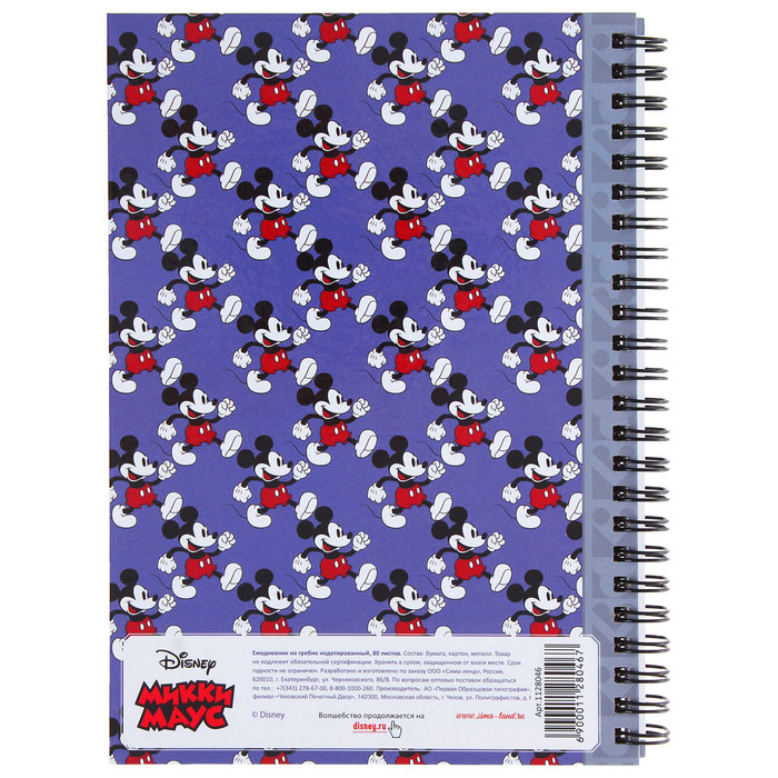 Ежедневник на гребне А5 "Микки", Микки Маус, 80 листов