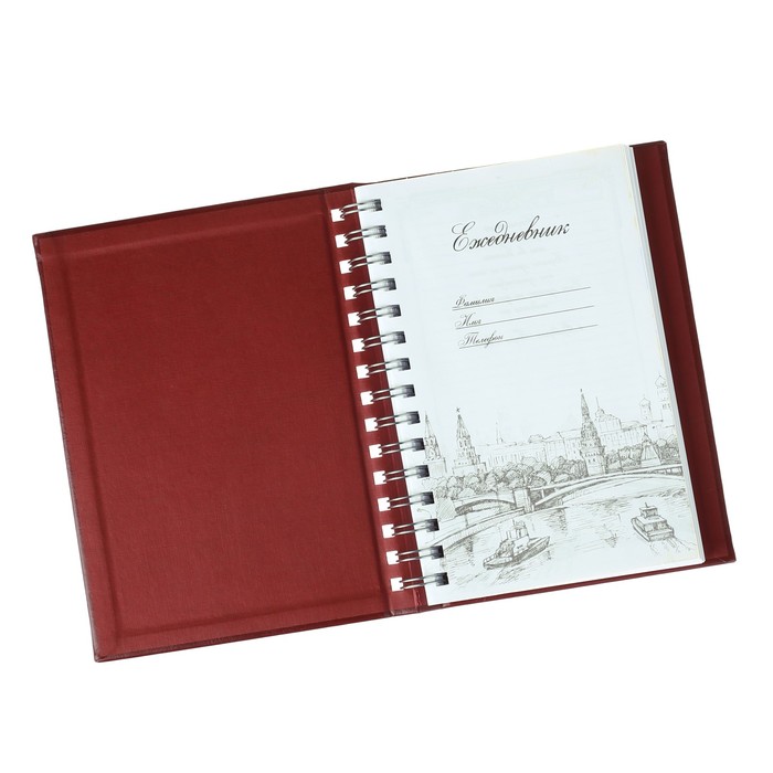 Ежедневник на скрытом гребне "Россия", экокожа, А5, 160 листов одновременно стильный и удобный. Красивая обложка, плотная и приятная на ощупь бумага — эта записная книга подходит для серьёзного человека. На листах не стоят даты, а это значит, что её можно начинать вести в любой день года и располагать ровно столько записей на листе, сколько вам нужно. Попробуйте планировать дела в течение двух недель, и вы не заметите, как управлять своим временем станет проще.