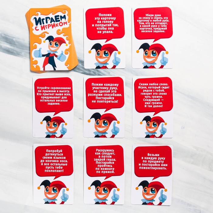 Невозможно представить нашу жизнь без праздников! Мы всегда ждём их и предвкушаем, обдумываем, как проведём памятный день, тщательно выбираем подарки и аксессуары, ведь именно они создают и поддерживают торжественный настрой. Фанты "Играем с Игриком" — это отличный выбор, который привнесёт атмосферу праздника в ваш дом!