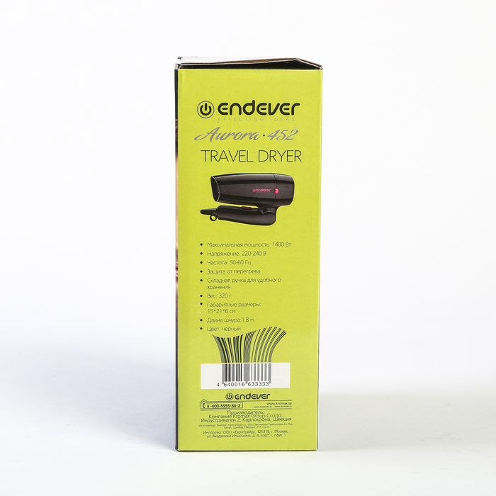 Фен Endever Aurora 452, 1400 Вт, 2 режима, 2 скорости, черный
