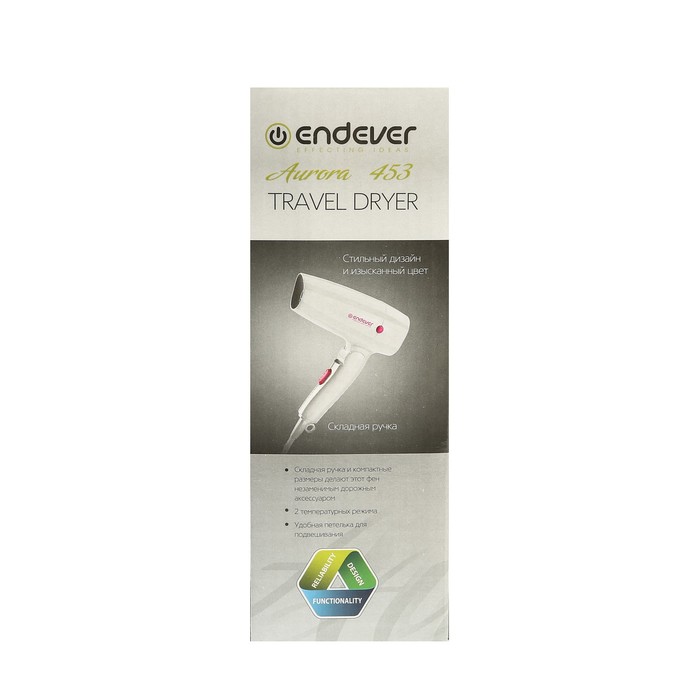 Мы предлагаем широкий ассортимент бытовой электроники. Фен Endever Aurora 453, 1400 Вт, 2 режима, 2 насадки, белый — это полезный и актуальный прибор, который прослужит долго и сделает вашу жизнь проще.