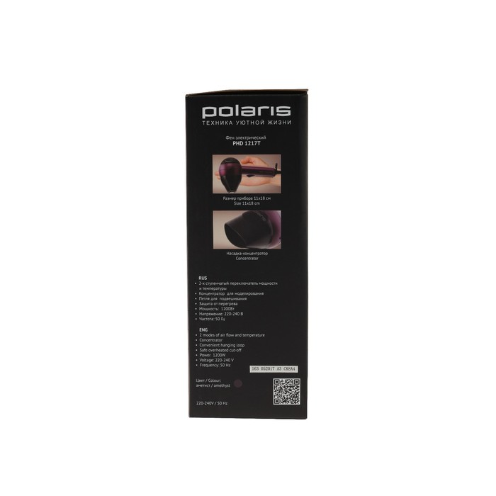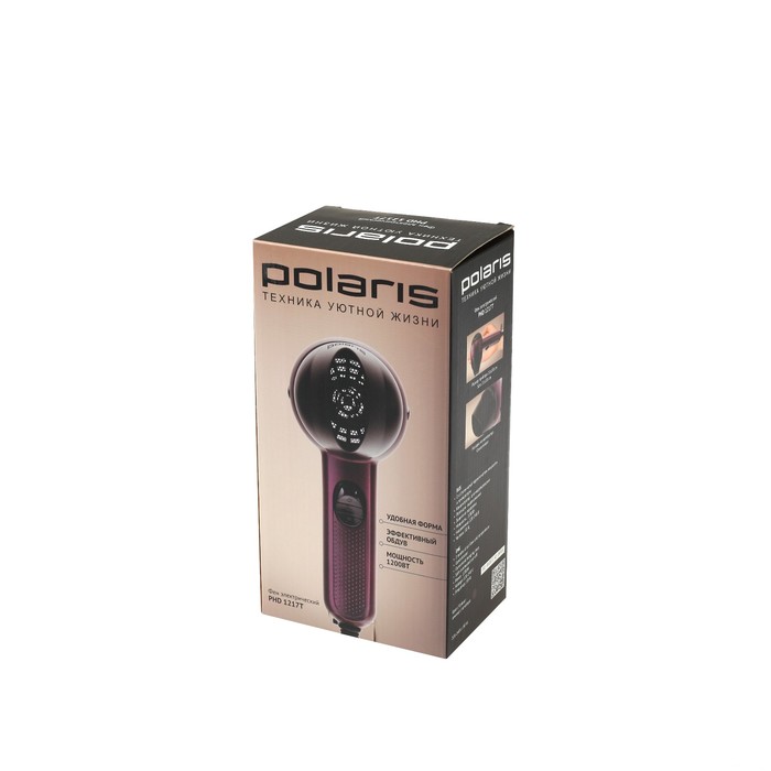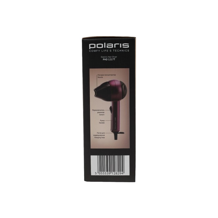 Фен Polaris PHD 1217T 1200W, дорожный, 2 режима нагрева, 2 скорости