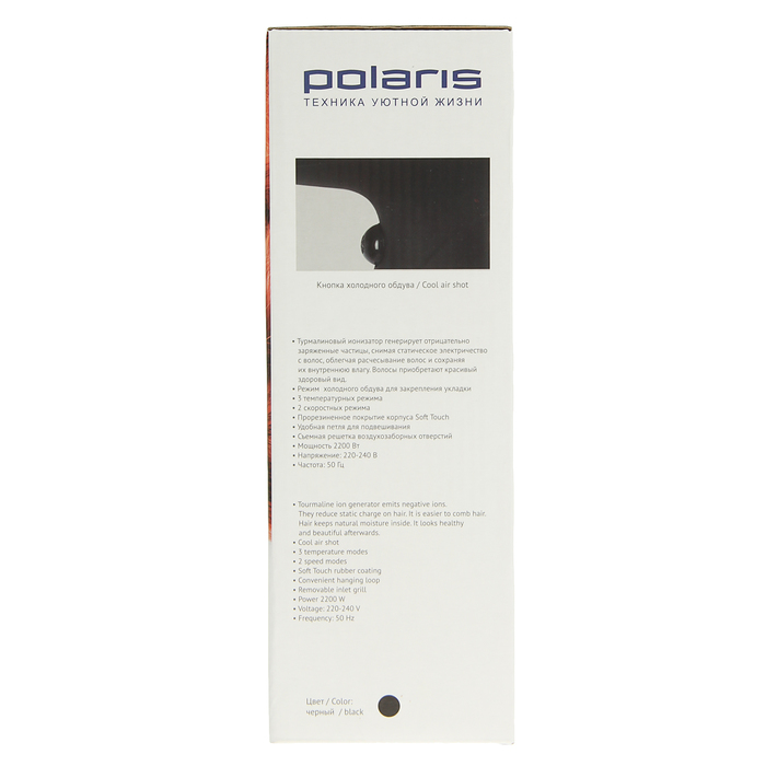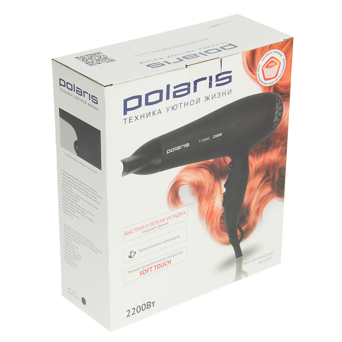 Фен Polaris PHD 2247Ti, 2200 вт, черный, 2 скорости, 3 режима, ионизация