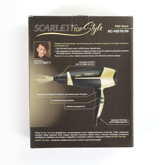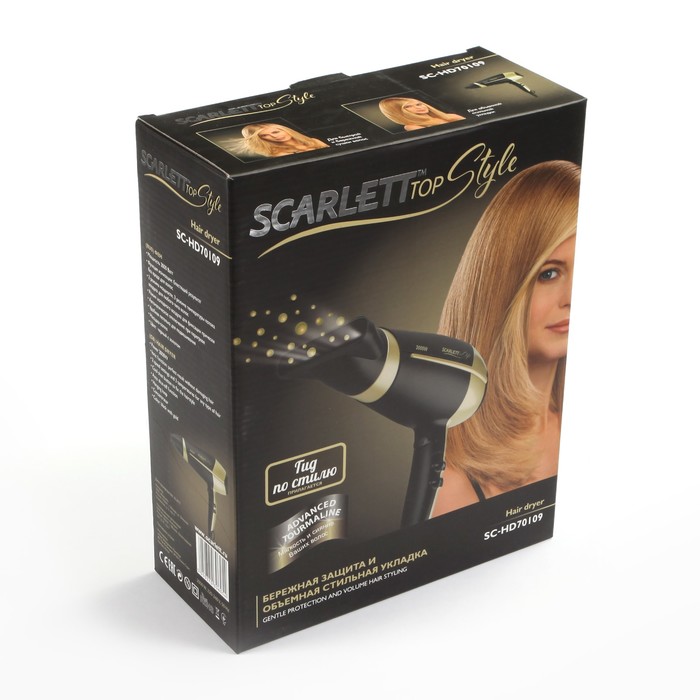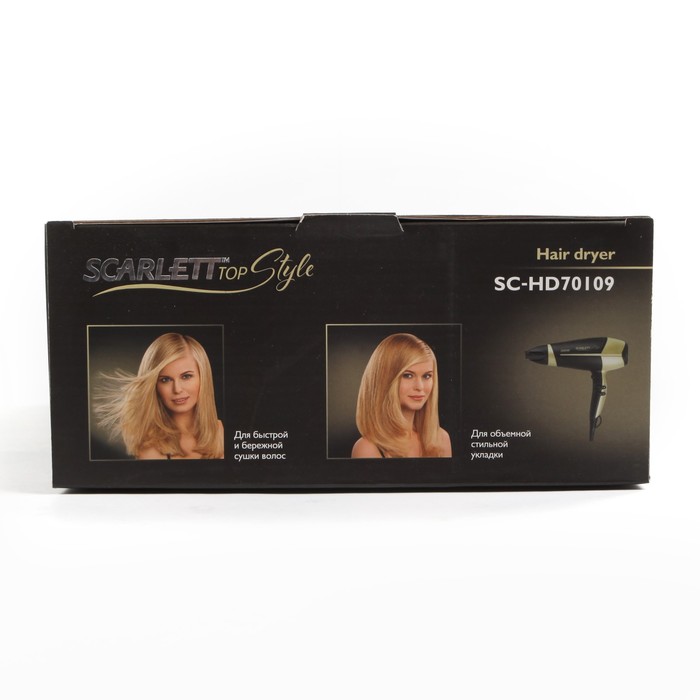 Мы предлагаем широкий ассортимент бытовой электроники. Фен Scarlett SC-HD70I09, 2000 Вт, 3 режима нагрева, черно-золотистый — это полезный и актуальный прибор, который прослужит долго и сделает вашу жизнь проще.
