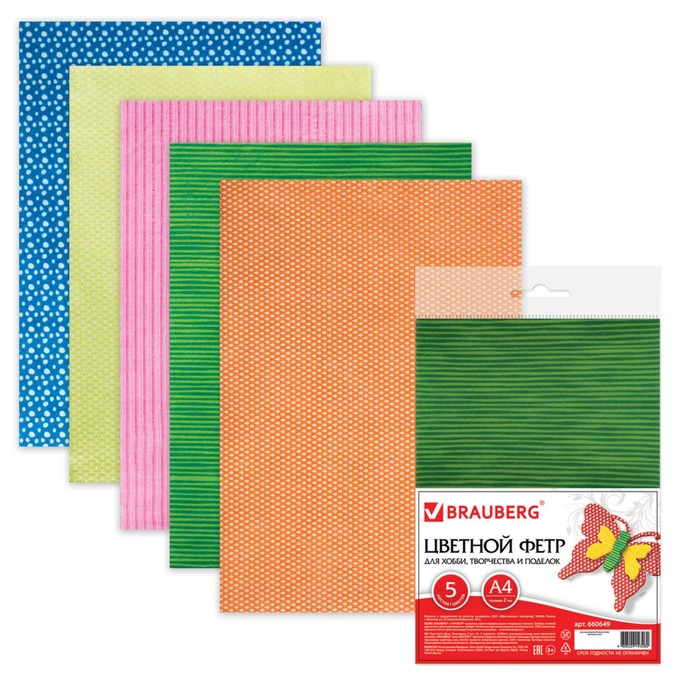 Фетр А4, 5 листов, 5 цветов BRAUBERG Цветная графика, с рисунком поможет организовать ваше рабочее пространство и время. Востребованные предметы в удобной упаковке будут всегда под рукой в нужный момент.
