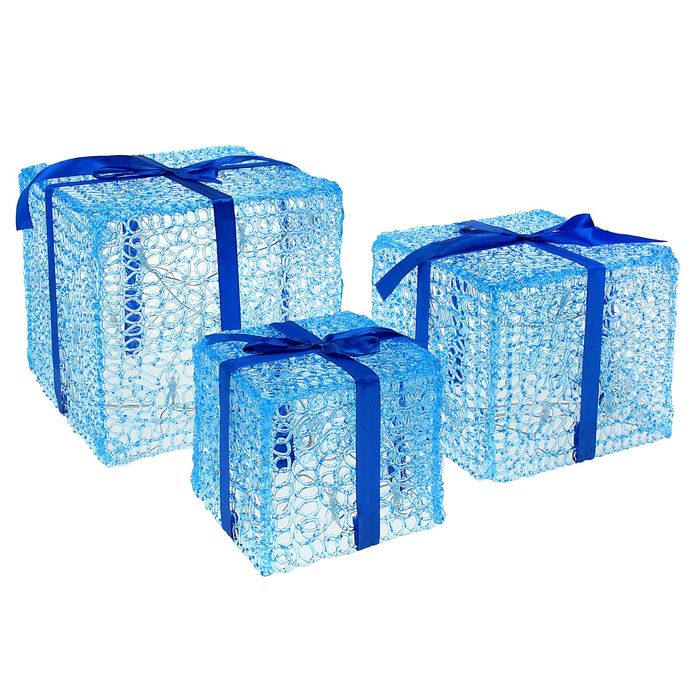Фигура акрил. "Подарки" Кубы 15, 20 и 25 см, 54 LED, 220V СИНИЙ
