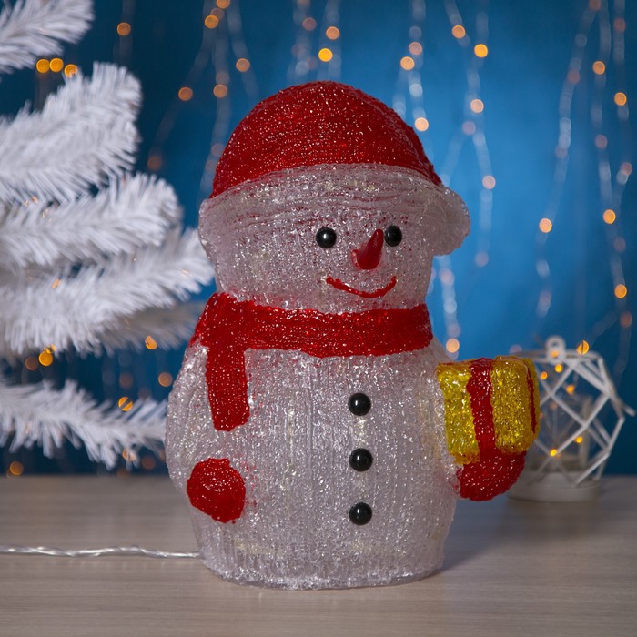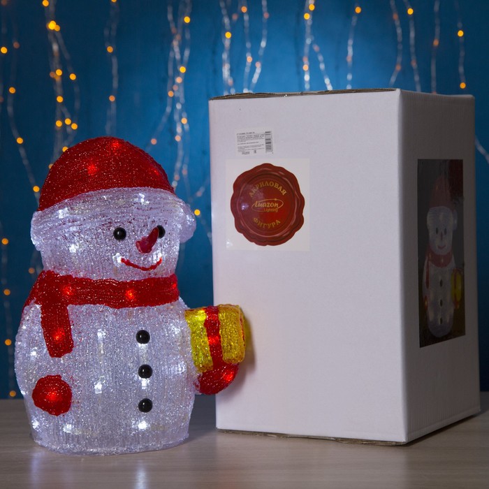Фигура акрил. "Снеговик с подарком" 21х25х30 см, контроллер с димером, 40 LED, 220V