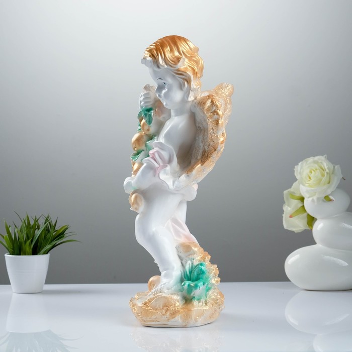 Фигура "Ангел с яблоками" 24х14х50см бело-золотой