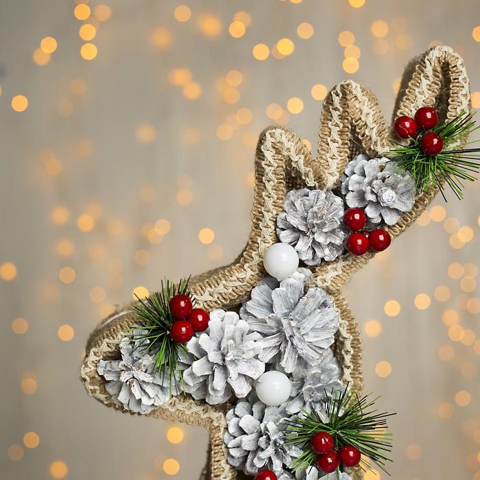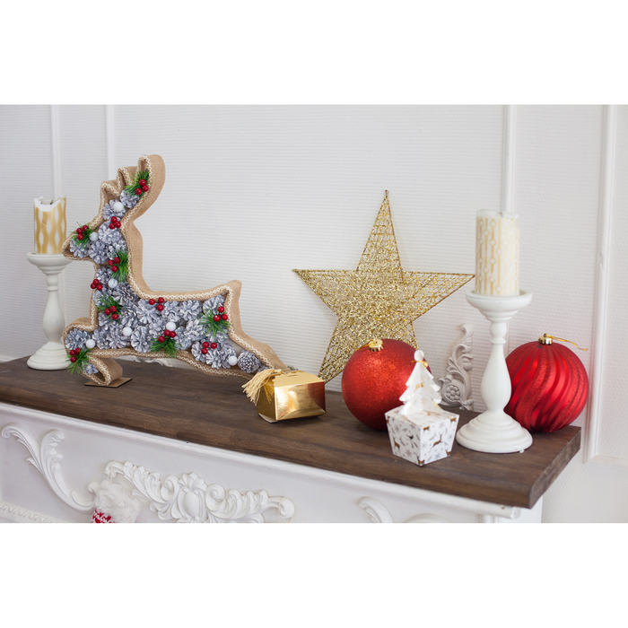Новогодняя фигура с еловыми веточками, шишками и тканевой окантовкой привнесёт в ваш дом атмосферу уюта, а её тёплый свет создаст праздничное настроение.