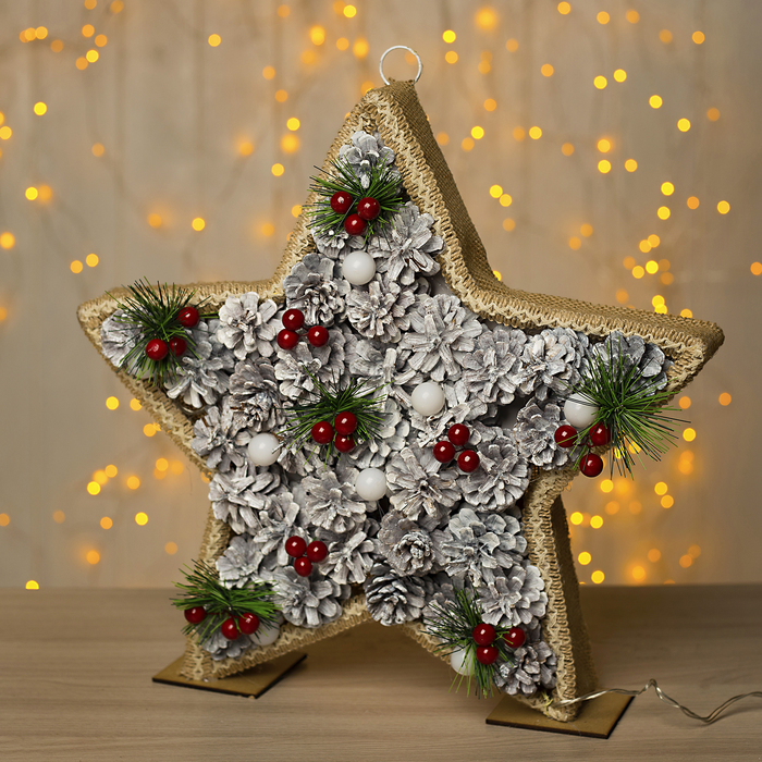 Фигура дерев "Звезда шишки" 38х5х38 см (3xAA не в компл.) 8 LED, ТЕПЛО-БЕЛЫЙ