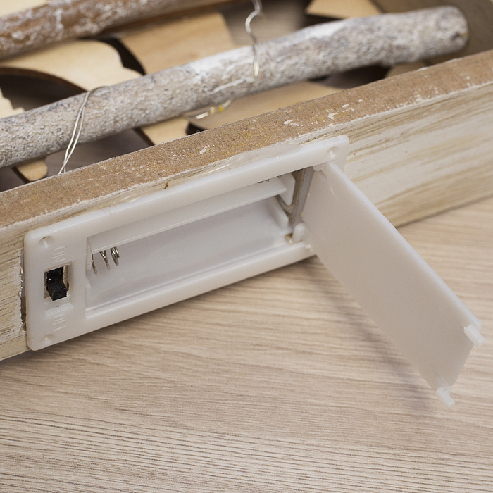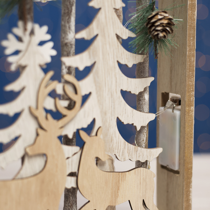 Фигура деревянная "Домик Олени и Ёлки", 34х23х4 см, 2*AАA (не в компл.) 12 LED