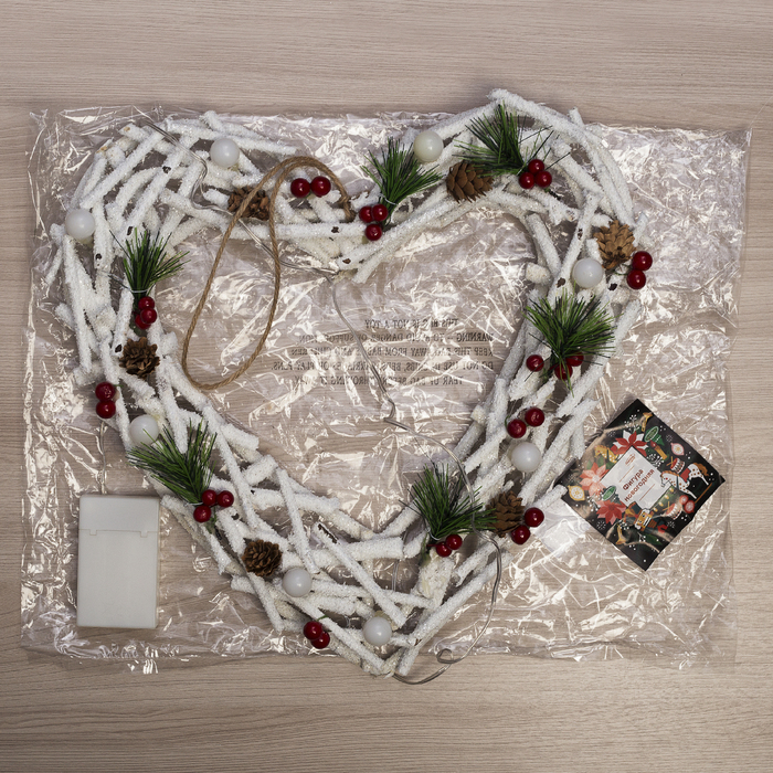 Фигура деревянная "Сердце из веток", 34х34х5 см, 3*AА (не в компл.) 8 LED, белое