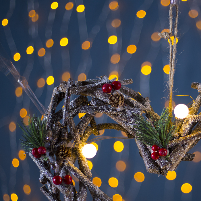 Фигура деревянная "Сердце из веток", 34х34х5 см, 3*AА (не в компл.) 8 LED, коричневое
