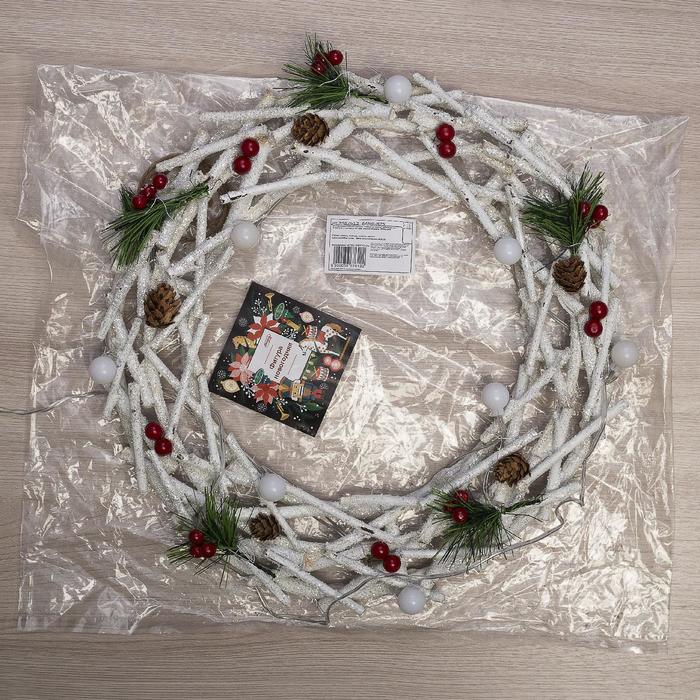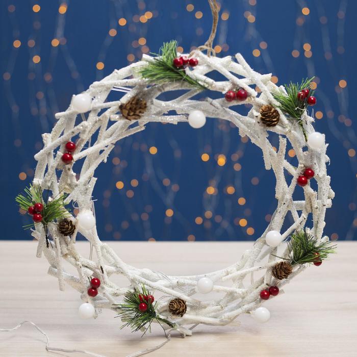 Фигура деревянная "Венок из веток" 35х6х35 см, 3*AА (не в компл.) 10 LED, белый