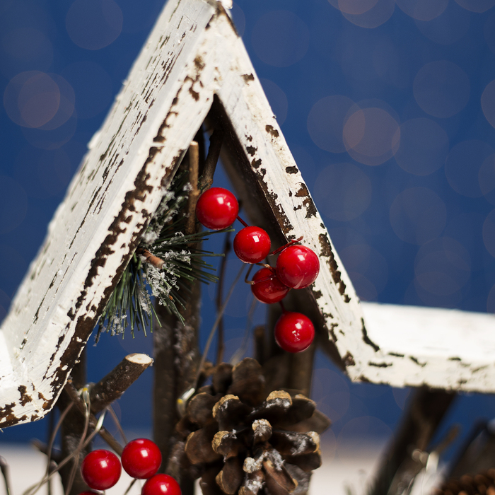 Фигура деревянная "Звезда Ветки и Шишки", 32х32х4.5 см, 2*AАA (не в компл.) 10 LED