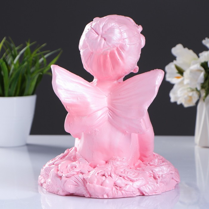 Фигура "Девочка на розах" перламутр розовый 22х17см