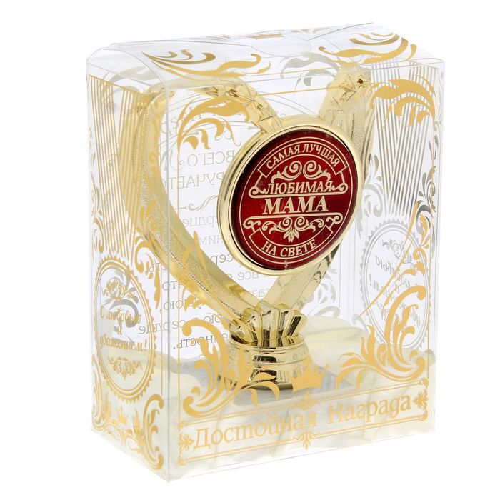 Фигура сердце "Любимая мама. Самая лучшая на свете" выполнена из пластика и дополнена металлической бляшкой с полимерной заливкой. Постамент имитирует мрамор. Изделие преподносится в подарочной пластиковой коробочке с тканью и золотым тиснением.