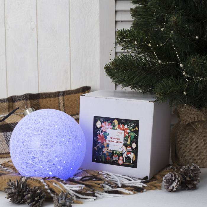 Фигура "Шар плетеный" 15 см, 50 LED-12V, нить белая, адаптер в комплекте, СИНИЙ