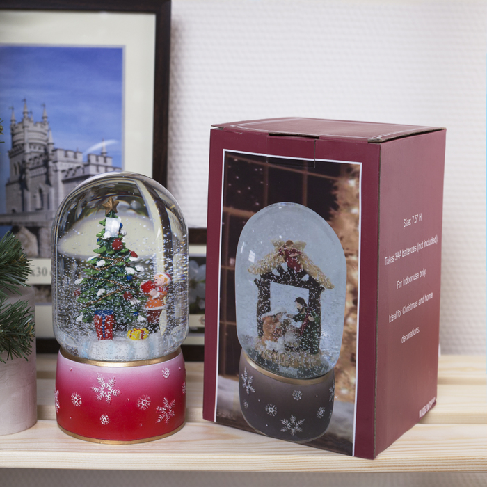 Фигура световая новогодний шар "Мальчик и ёлка", 19х10х10 см, 3*АА(не в комп),Т-БЕЛЫЙ
