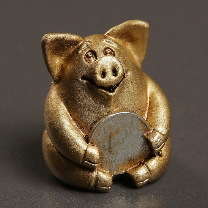 Фигура "Свинка рубль бережет" золото 5х5х5см