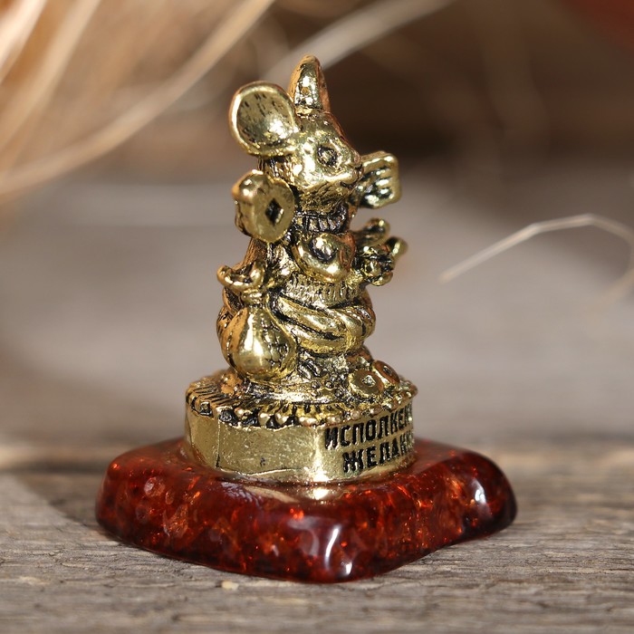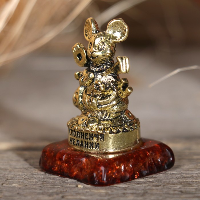 Фигурка мышка на камне "Исполнения желаний", 3,5 х 1,9 х 2,1 см