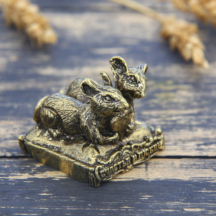 Фигурка мышка "Счастья и любви", латунь, 3,5 х 3,1 см