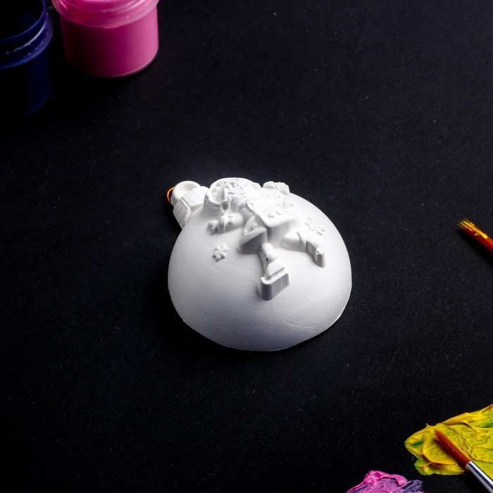 Фигурка под раскраску (с подвесом) "Шар на елку со Снегурочкой" 5х5см, белая
