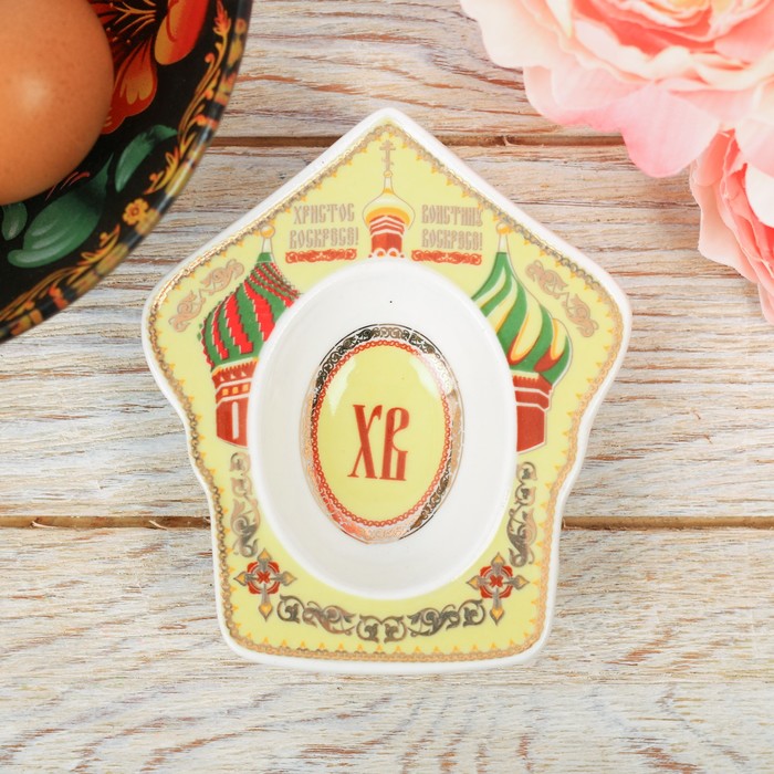 Подставка изготовлена из прочной белоснежной керамики с нанесением тематических изображений насыщенными натуральными и безопасными красками. Оригинальная форма и дизайн с прорисовкой светлых православных образов и пасхальных символов разработаны профессионалами компании Сима-ленд.