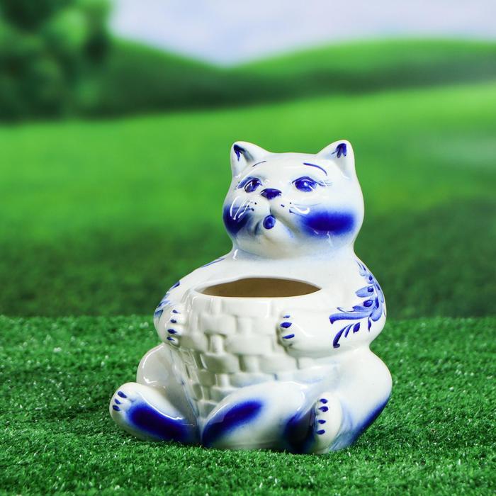 Фигурное кашпо 1 л "Котик" гжель