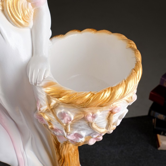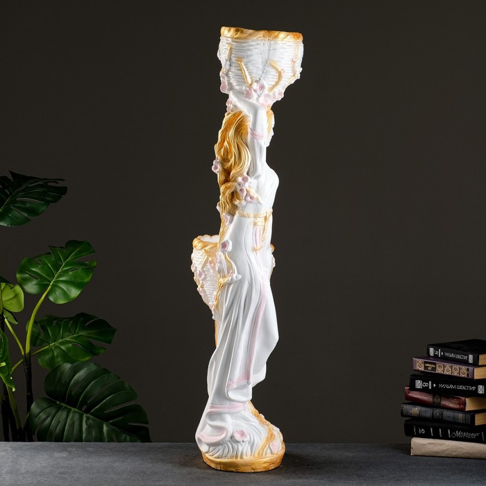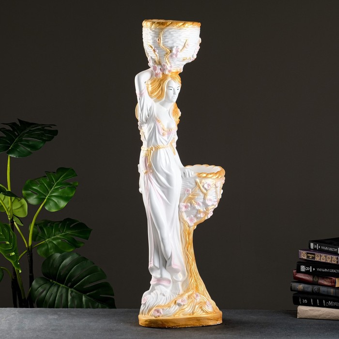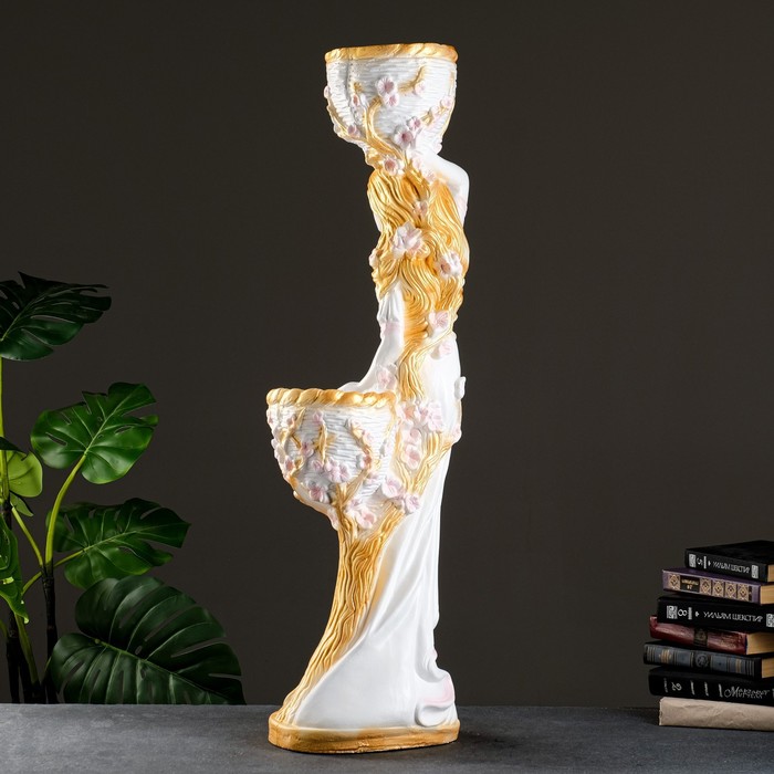 Фигурное кашпо "Девушка с двумя кашпо" 21х32х96см бело-золотой