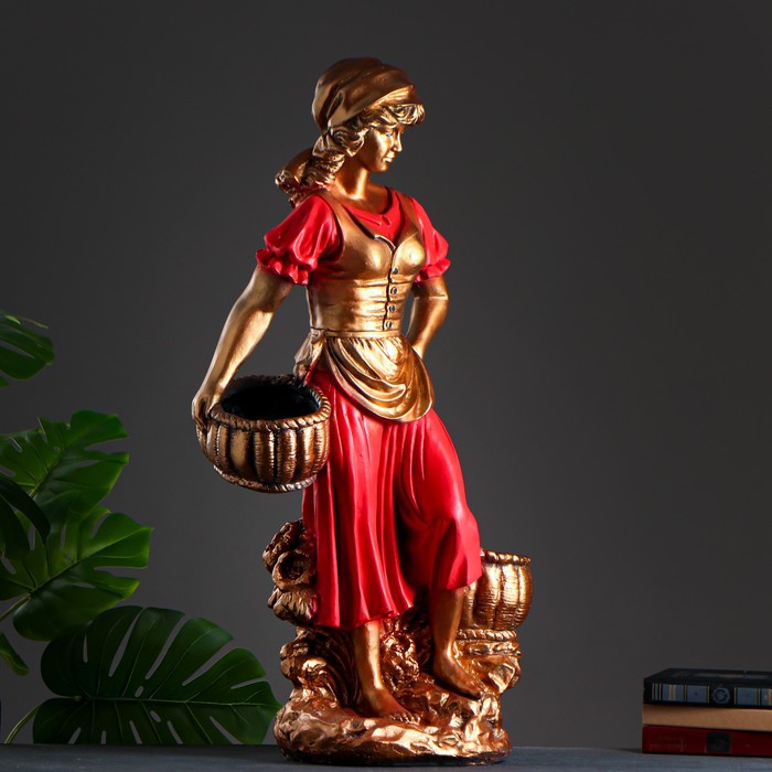 Фигурное кашпо "Девушка с двумя корзинами" бронза, цвет красный 90см МИКС позаботится о растении, украсит окружающее пространство и подчеркнёт его оригинальный стиль.