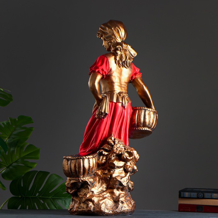 Фигурное кашпо "Девушка с двумя корзинами" бронза, цвет красный 90см МИКС