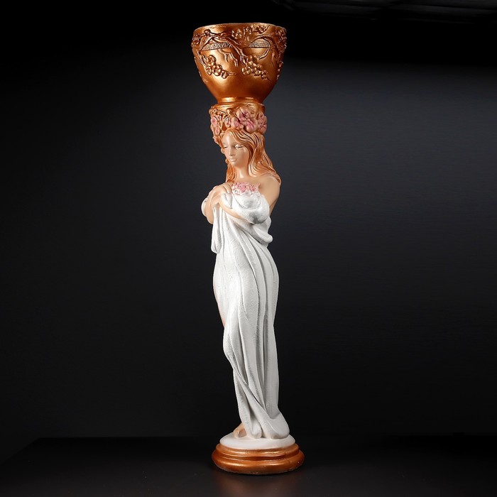 Фигурное кашпо "Девушка стоя с цветами" белое с золотом 104х23х23см