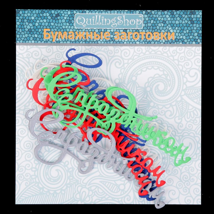 Фигурные вырубки "С праздником" набор 10 шт, 8,5х3см МИКС 5-и цв.