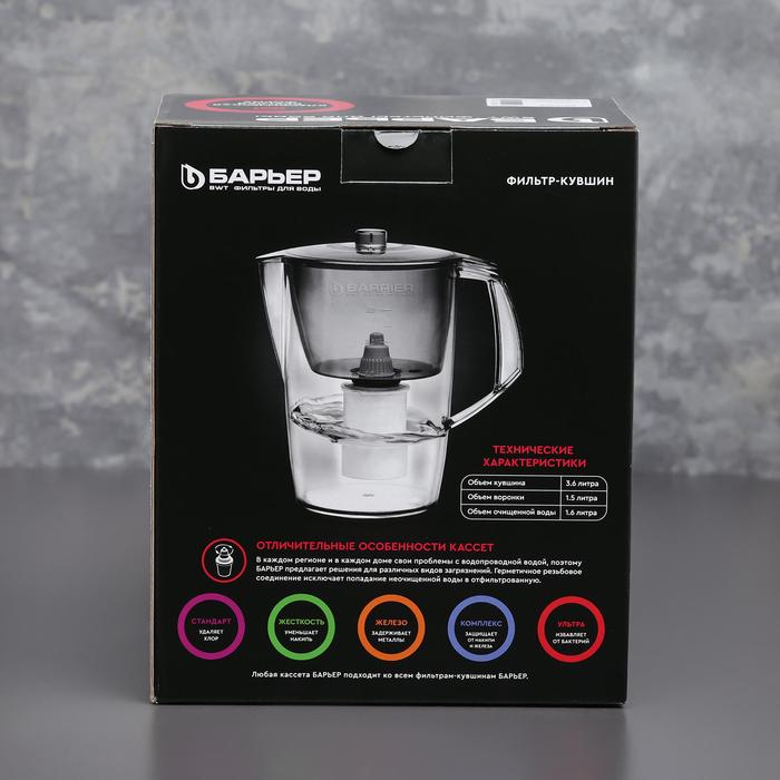 «Барьер. Норма» — оптимальное решение для большой семьи. С этим вместительным фильтром вам больше не придётся беспокоиться о неприятном запахе и вредных веществах, содержащихся в воде. К фильтру-кувшину подходят 4 вида сменных кассет для воды с разными типами загрязнения — вы сможете выбрать тот тип, который больше всего подходит именно вам!