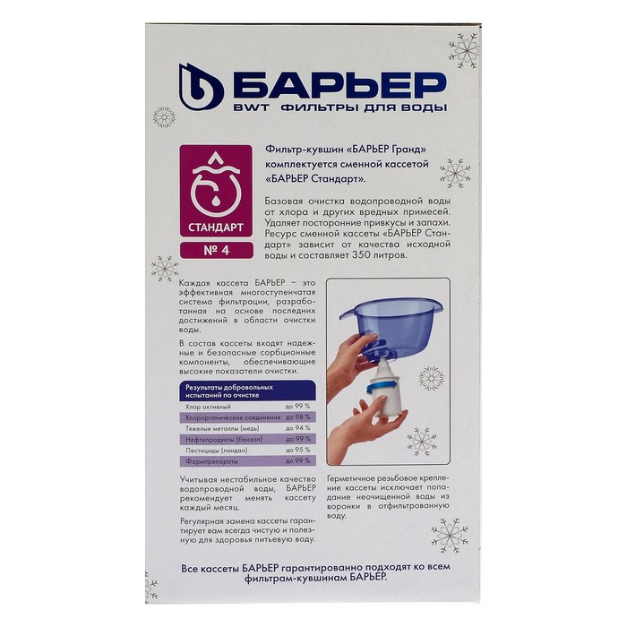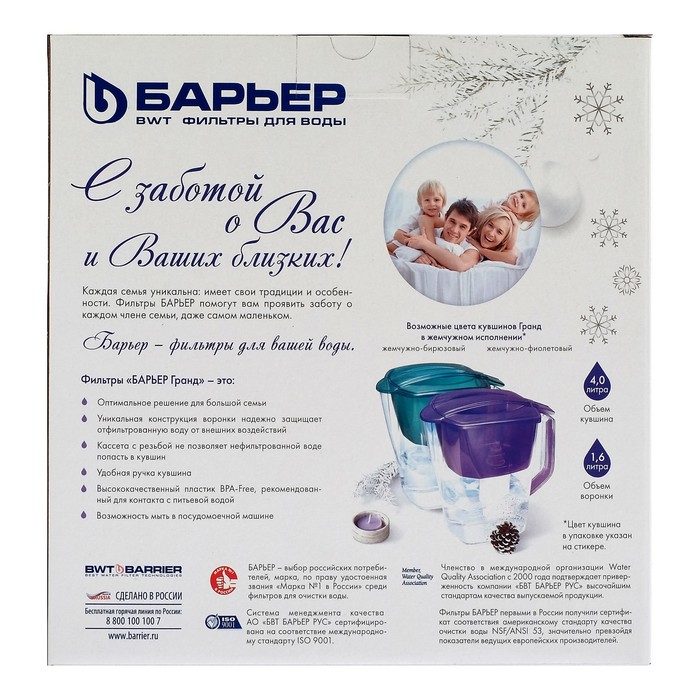 От качества посуды зависит не только вкус еды, но и здоровье человека. Фильтр-кувшин 4 л "Барьер-Гранд", цвет жемчужно-бирюзовый — товар, соответствующий российским стандартам качества. Любой хозяйке будет приятно держать его в руках. С нашей посудой и кухонной утварью приготовление еды и сервировка стола превратятся в настоящий праздник.