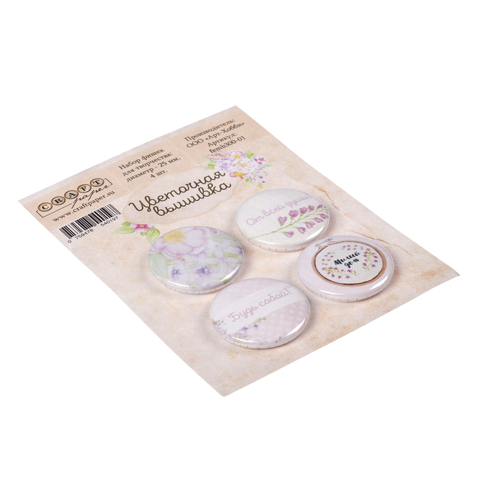 Фишки для скрапбукинга "Цветочная вышивка" набор 4 шт, d=2,5 см