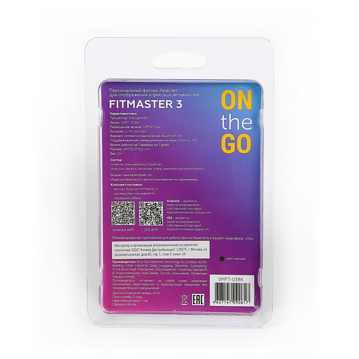 Фитнес-браслет Smarterra FitMaster 3, черный — это новая категория портативных устройств, оснащённых электронной начинкой и такими датчиками как гироскоп, акселерометр, шагомер, датчик пульса. Основная идея — обмен данными со смартфоном и получение с него различного рода уведомлений.