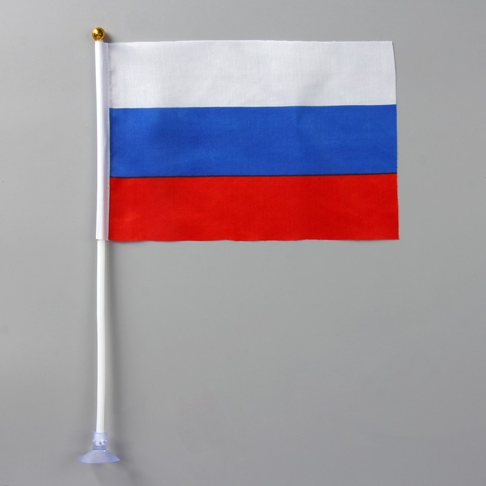 Флаг 21х14 см России на присоске, шток 31 см, полиэстер, пластик