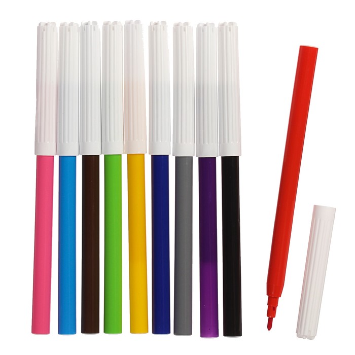 В отличие от карандашей, фломастеры не нуждаются в заточке и не требуют усилий для создания ярких линий. Перед красками у них преимущество в том, что изображения сразу получаются чёткими, а насыщенность цвета нисколько не уступает гуаши.