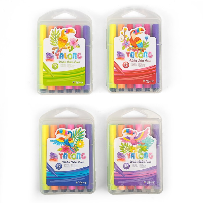 Фломастеры 12цв ТОЛСТЫЕ треугольные в пластиковом пенале Yalong вентилируемый колпачок МИКС