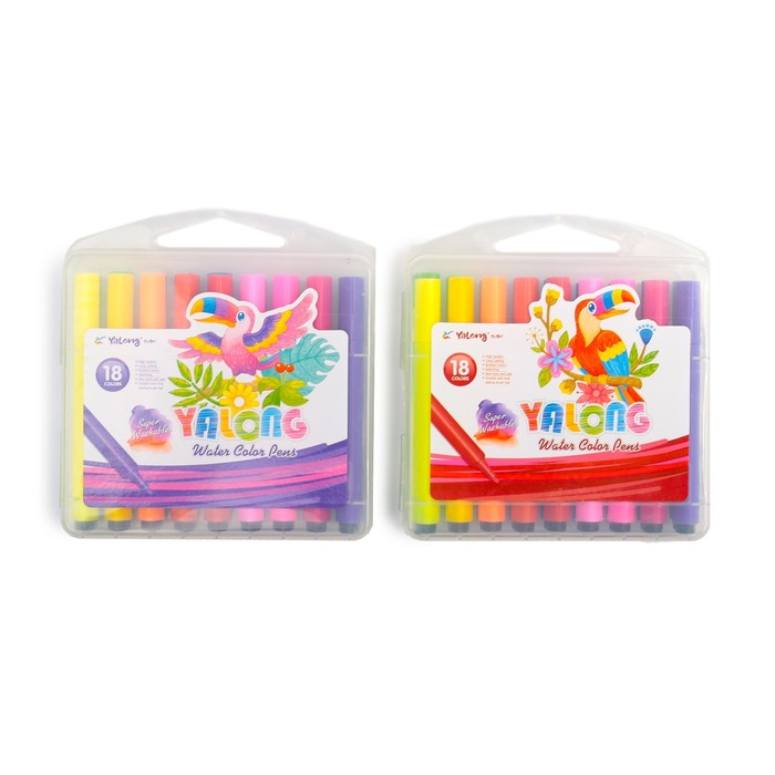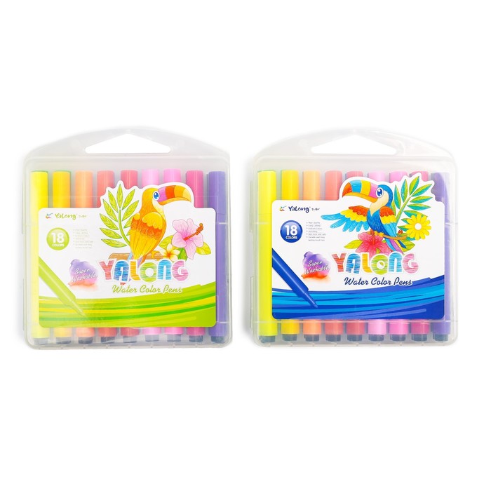 Фломастеры 18цв ТОЛСТЫЕ треугольные в пластиковом пенале Yalong вентилируемый колпачок МИКС