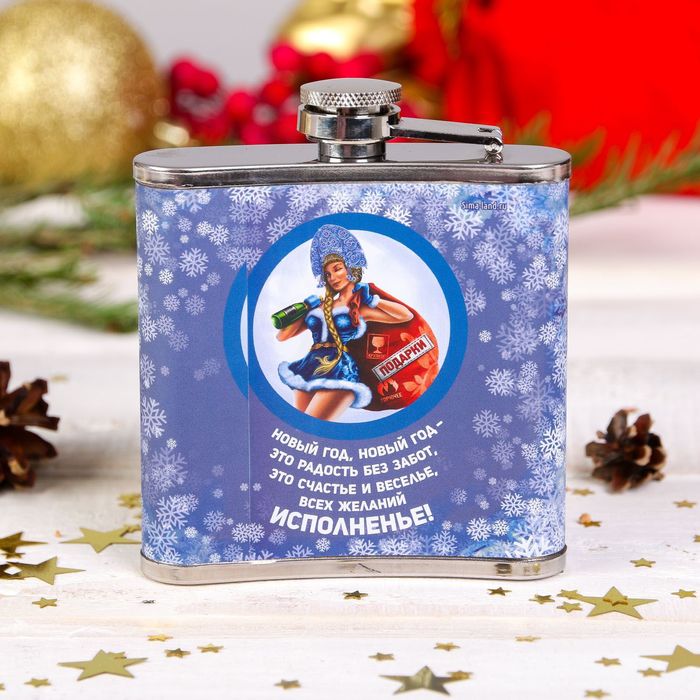 Фляжка переживёт с вами любые праздничные испытания. Она выполнена из нержавеющей стали, что делает её долговечной и стойкой к перепадам температуры. Крышка надёжно крепится к корпусу, поэтому не упадёт и не потеряется.